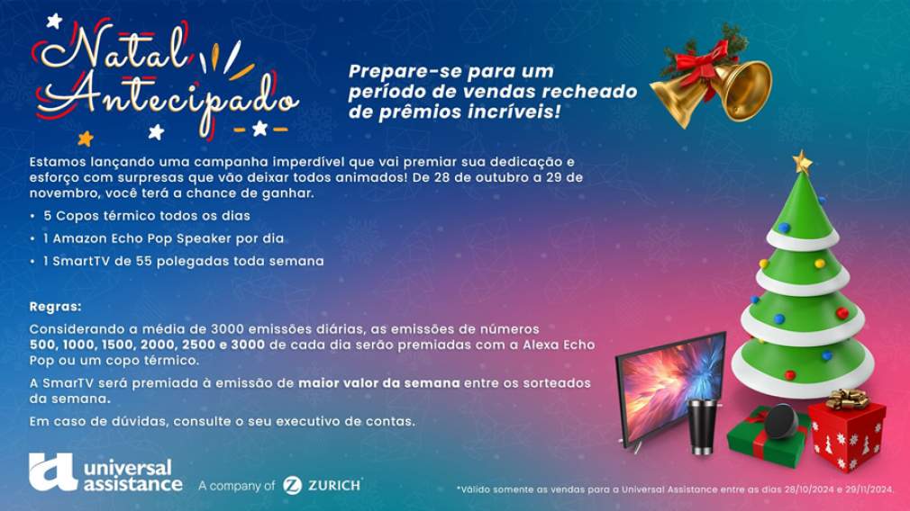 A Universal Assistance, marca de seguro viagem do Grupo Zurich, anunciou o lançamento de sua campanha "Natal Antecipado", voltada para agentes de viagem e agências parceiras.