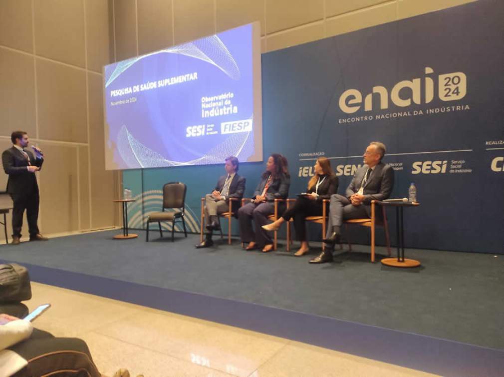 O 14º Encontro Nacional da Indústria (ENAI), realizado em Brasília, reuniu autoridades, especialistas e representantes do setor industrial e do governo para discutir temas estratégicos para o desenvolvimento do país. Como parte da programação, a mesa redonda “Visão do Contratante de Planos de Saúde - Desafios e Oportunidades” abordou os desafios enfrentados pelas empresas na gestão de planos de saúde corporativos. O debate contou com a participação de Ademar José de Oliveira Paes Junior, membro do conselho da Abramed e CEO da LifesHub ; Jacqueline Alves Torres, assessora da Agência Nacional de Saúde Suplementar (ANS); Danila Pires Cardoso, diretora de Pessoas do Grupo CCR; e José de Assis Pires de Miranda Junior, coordenador de Saúde Ocupacional do SESI-SP. O moderador foi Emmanuel Lacerda, superintendente de Saúde e Segurança na Indústria do SESI.