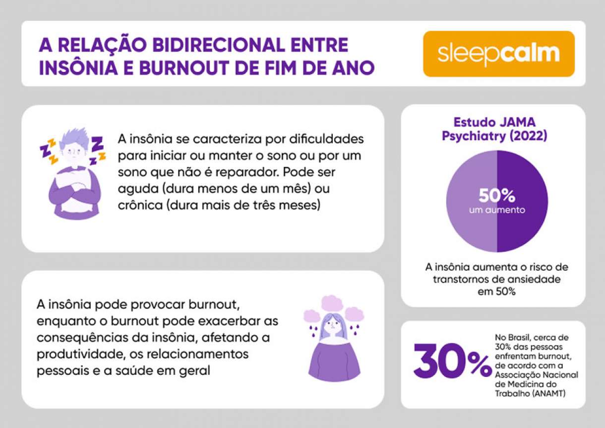 “Encerrar um ano é também fechar um ciclo e isso pode trazer um acúmulo de cansaço, frustrações e obrigações. Por conta disso, os riscos de burnout crescem, muitas vezes levando à insônia, pois pessoas em estado de exaustão tendem a ficar em constante alerta, o que dificulta o seu relaxamento. Por outro lado, isso pode intensificar o estresse, afetando o bem-estar emocional e o desempenho profissional”, explica Matias Burstien, CEO e fundador da SleepCalm.