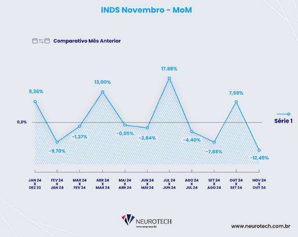 Cenário se manteve estagnado em relação a 2023, mas apresentou queda significativa em relação a outubro deste ano