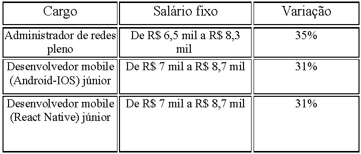 Confira abaixo as principais variações percentuais de alta nos salários do setor de tecnologia: