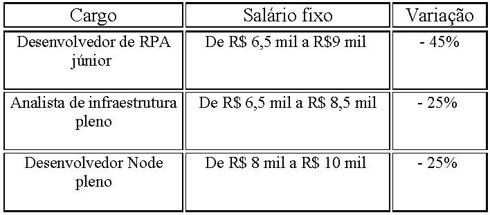 Confira abaixo as principais variações percentuais de queda nos salários do setor de tecnologia:
