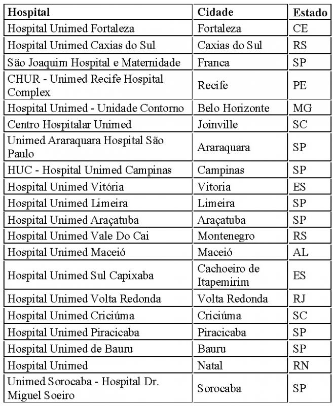 A Unimed aumentou em 17,6% a sua participação no ranking, em relação ao levantamento do ano passado, que tinha 17 estabelecimentos da marca. Entre os hospitais Unimed classificados, 14 (70%) estão localizados em cidades do interior e 6 nas capitais Belo Horizonte, Fortaleza, Maceió, Natal, Recife e Vitória.