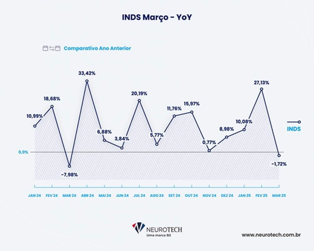 Primeiro recuo no intervalo de 12 meses gera um alerta para o setor, apesar do saldo positivo no acumulado do primeiro trimestre, afirma analista da Neurotech