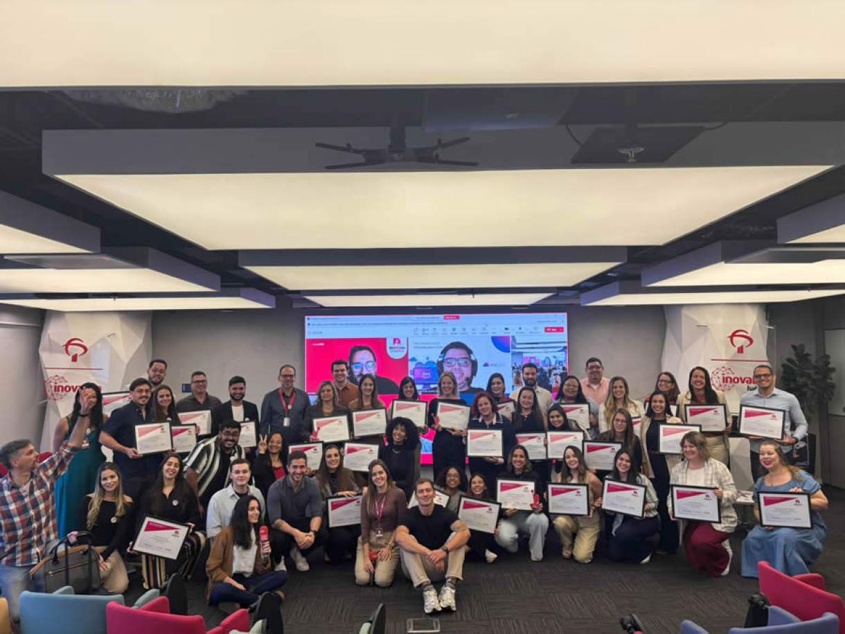 A celebração, realizada no Inovabra Habitat, ecossistema de inovação do Grupo Bradesco, reuniu formandos e suas lideranças em um momento de reconhecimento e valorização da trajetória percorrida. Durante a cerimônia, o projeto de maior destaque — avaliado por uma banca especializada — recebeu um troféu de reconhecimento, e os funcionários mais engajados nas atividades da trilha de conhecimento foram homenageados com acesso a um curso da trilha de Alta Liderança, promovido pela consultoria internacional AMCHAM.