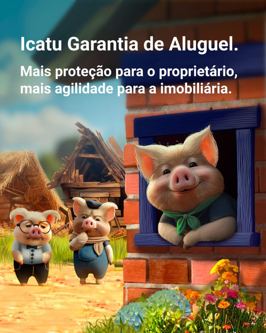 Icatu impulsiona expansão da garantia de aluguel com campanha lúdica inspirada em ‘Os Três Porquinhos’