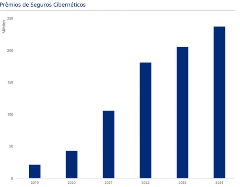 Os crescentes crimes cibernéticos acenderam um alerta, levando as empresas a procurar, cada vez mais, apólices de seguros para mitigar esses riscos. Segundo o relatório “Cybersegurança no Brasil e no Mundo”, produzido pela corretora de resseguros Guy Carpenter com informações compiladas do mercado, no período compreendido entre 2019 e o ano passado, os prêmios de seguros dessa modalidade cresceram 11 vezes, saltando de R$ 21,4 milhões para R$ 237,5 milhões, o que representa uma alta anual média de 62%.