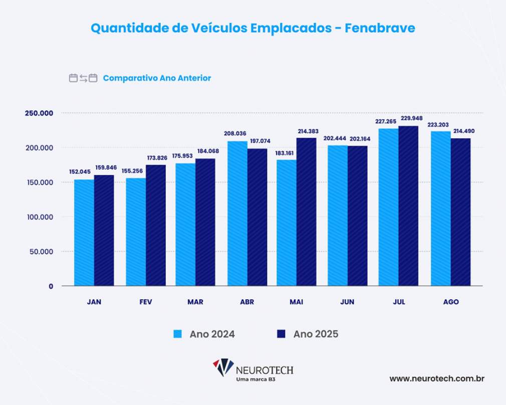 Daniel Gusson, head comercial de Seguros da Neurotech, lembra que o mês de agosto teve menos dias úteis (21) em relação ao mês anterior (23), o que impacta consideravelmente o Índice. “Justamente pelas boas perspectivas da Fenabrave para o restante do ano e o aquecimento recente do mercado de veículos novos, esses dois dias a menos fazem muita diferença quando realizamos a comparação. Ainda assim, a projeção de crescimento do mercado ao final de 2025 se mantém acima de 5%, o que é um ótimo sinal para as seguradoras.