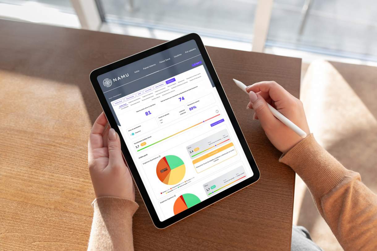 Chamado de Namu Saúde e Segurança no Trabalho, o produto disponibiliza vídeos com instruções sobre a NR-1 para gestores de RH e também conteúdos para gestores e colaboradores, ressaltando a importância do tema. Além de conteúdo, a ferramenta realiza o mapeamento do risco psicossocial por meio de questionário eletrônico, com tempo máximo de resposta de 7 minutos e gera um completo dashboard anonimizado com os riscos identificados e sugestões de ações que devem ser incluídas no PGR.