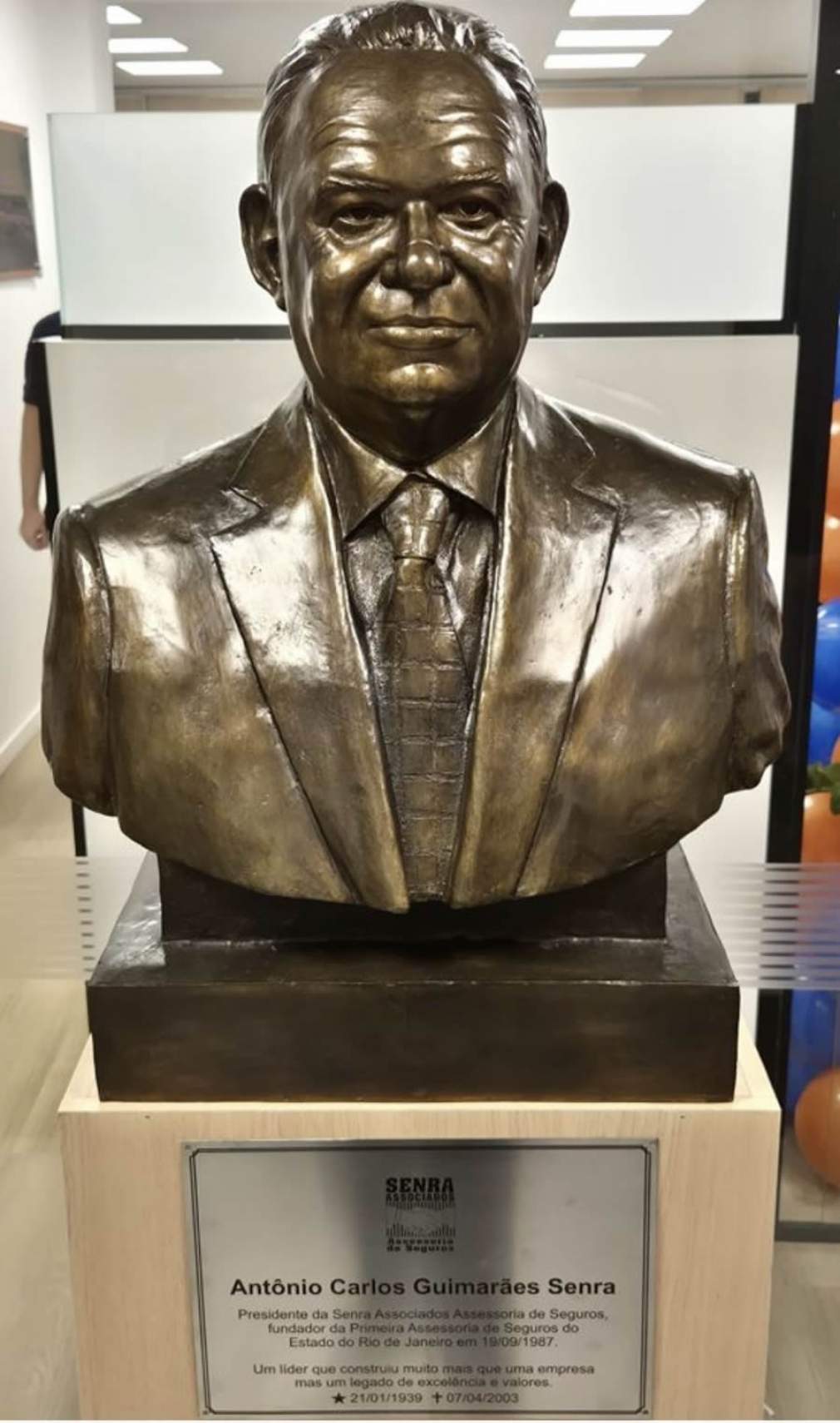 O presidente da Aconseg-RJ, Luiz Philipe Baeta Neves, parabenizou Antônio Carlos Senra, presidente da Senra Associados Assessoria, pela bela homenagem feita ao seu pai, inaugurando o busto do pioneiro na sede da empresa, no Centro do Rio. “Quando resolvemos montar a Baeta Assessoria, Senra nos recebeu oferecendo sugestões e relatando sobre a sua experiência, o que foi valioso para nós. Esta homenagem eterniza o legado de quem ajudou a construir a história das assessorias no Brasil”, ressaltou Baeta.