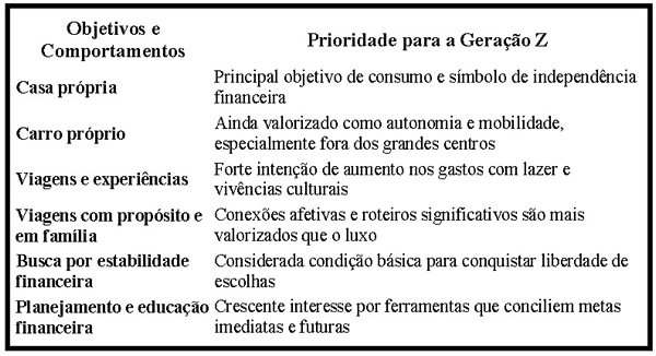 A seguir, alguns dos principais objetivos e prioridades que orientam o comportamento da Geração Z: