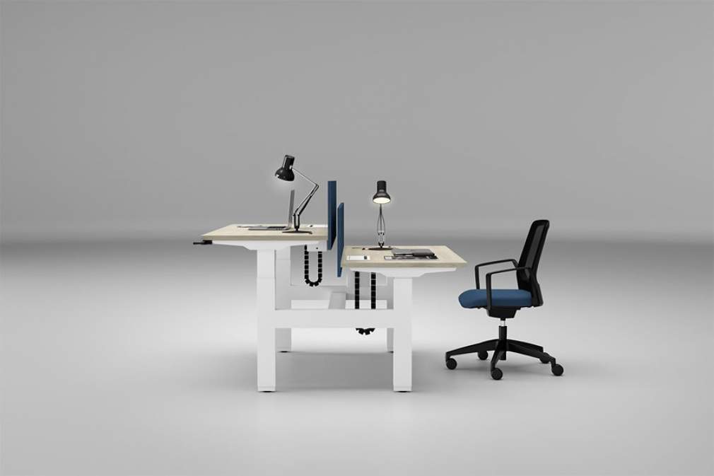 Projetadas para se adaptar a diferentes perfis de uso, podem contar com sistemas de regulagem manual ou elétrica com duplo motor, permitindo ajustes de altura de forma fluida, silenciosa e precisa. Essa capacidade de personalização melhora a postura e reduz desconfortos físicos, e também amplia a flexibilidade do espaço, tornando-o compatível com layouts individuais ou coletivos.