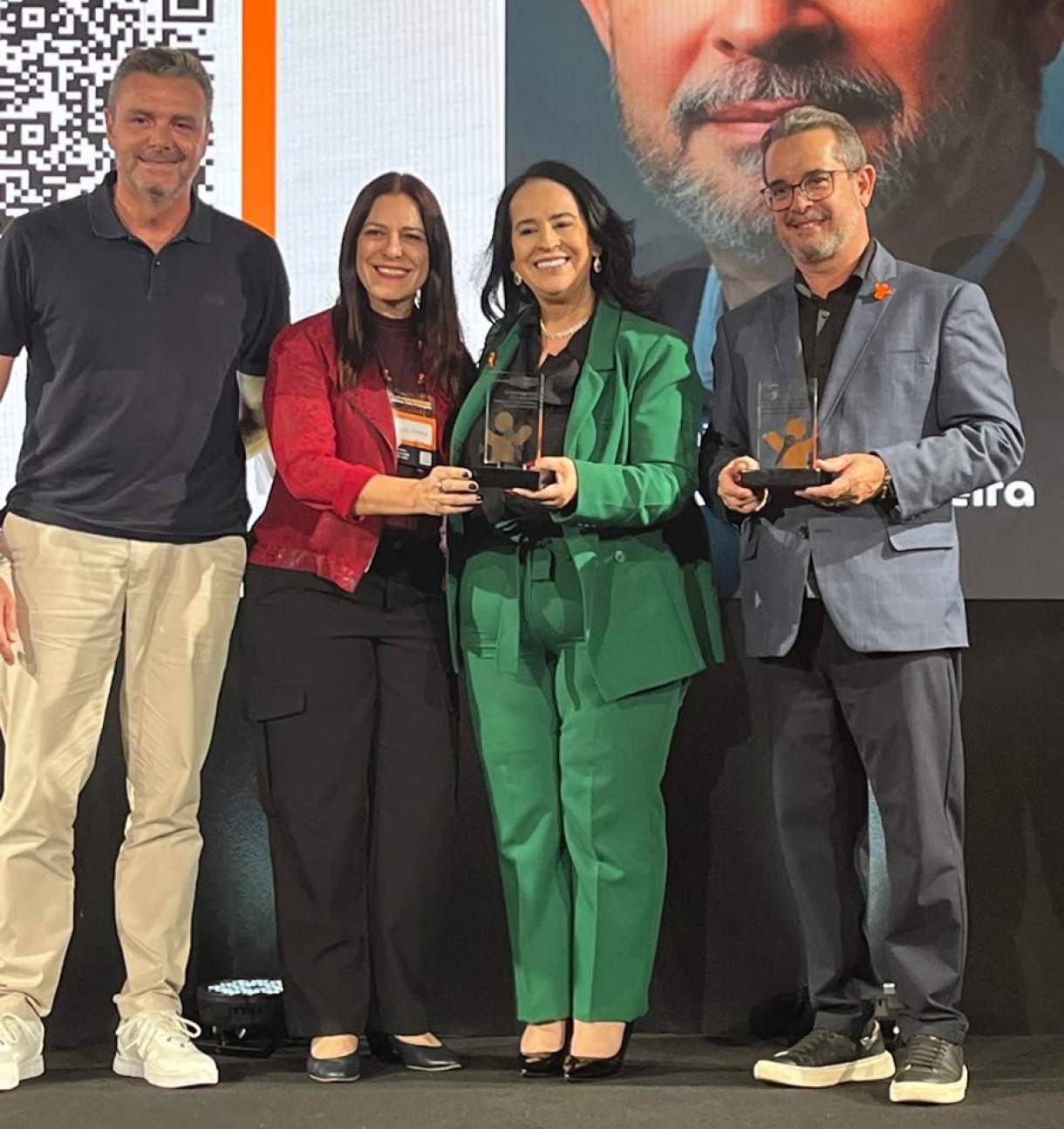 Sonia Marra (presidente CVG-RJ) (E) homenageou Dagliane Santos (embaixadora e vice-presidente do Instituto MVP) (D) e Fernando Pavão (Centauro Seguradora) (E) homenageou o Dr. Landulfo Ferreira Jr. (Palestrante) (D) – Foto: Divulgação