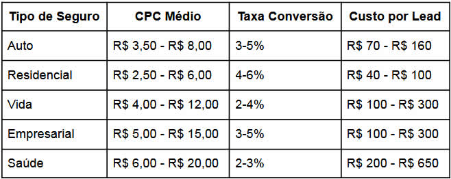 Exemplo: Para gerar 50 cotações mensais de seguro auto, com custo médio de R$ 100 por lead, reserve R$ 5.000. Comece conservador — R$ 50 a R$ 100 diários — e escale