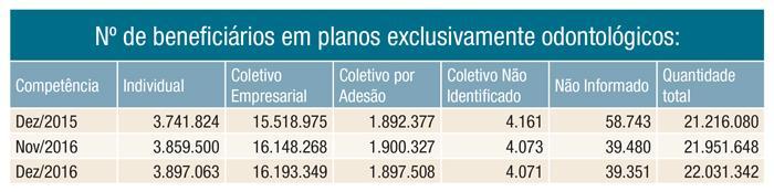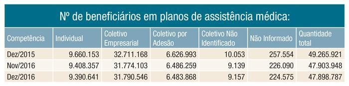 Em dezembro, o setor registrou 47.898.787 beneficiários em planos médico-hospitalares e 22.031.342 em planos exclusivamente odontológicos. A comparação com o mês de novembro mostra que o número de consumidores em planos de assistência médica manteve-se estável – cerca de cinco mil beneficiários a menos que o mês anterior. Já os planos exclusivamente odontológicos seguiram a tendência de crescimento, com 79,7 mil beneficiários a mais que no mês anterior.