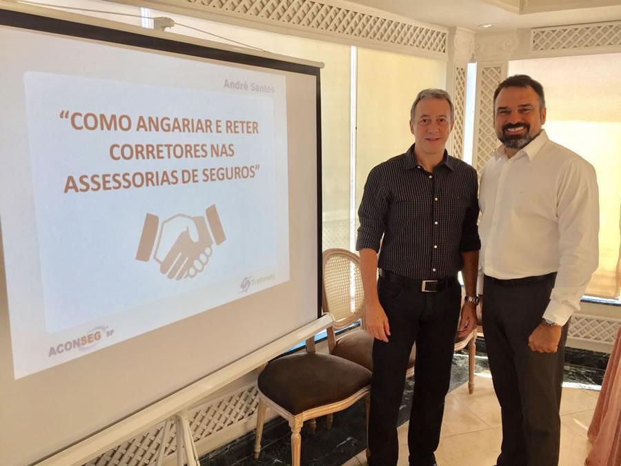 O corretor de seguros e diretor da TreinaSeg, André Santos, especialista em técnica de vendas para o mercado de seguros, discorreu sobre como angariar e reter o corretor de seguros nas assessorias de seguros. “Você deve olhar para ele com olhar de oportunidade, pensando em como se encaixar para ajudá-lo e assim fazer mais negócios”.