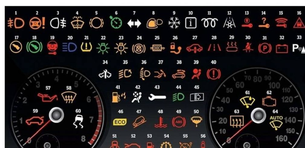 - Alerta de pressão do óleo baixo (57) ou alerta de temperatura (48) – Ao verificar um destes símbolos ligado no painel, o motorista deve procurar um local seguro para estacionar, pois o carro pode sofrer um dano sério no motor, parar e provocar um grande prejuízo. O ideal é pedir um reboque e levar o veículo imediatamente a um mecânico.