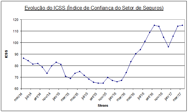 Pelo terceiro mês consecutivo, o otimismo do setor de seguros continuou. Ou seja, indicadores de confiança acima de 100 pontos.