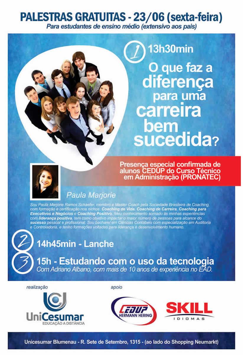 Onde? No auditório do polo da Unicesumar, em Blumenau