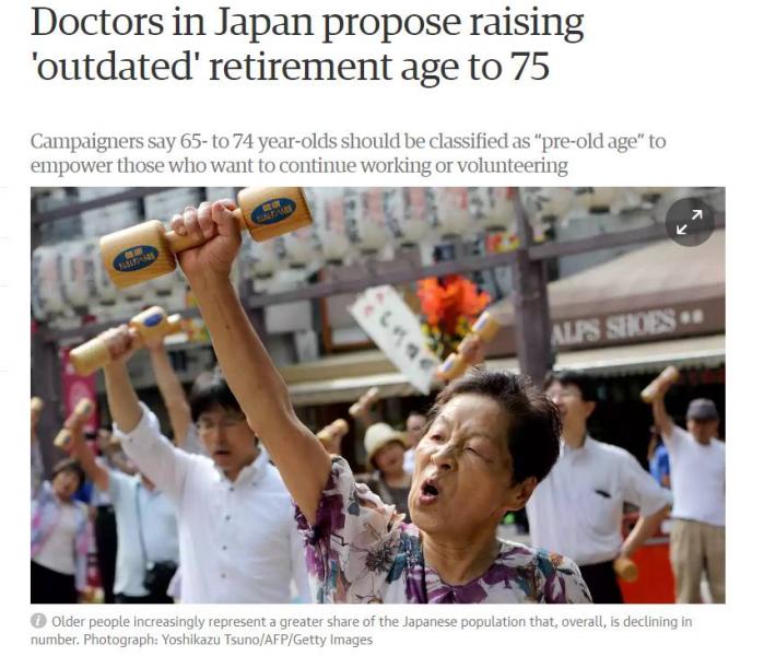 Ver... https://www.theguardian.com/world/2017/jul/18/japan-doctors-propose-raising-retirement-age-to-75