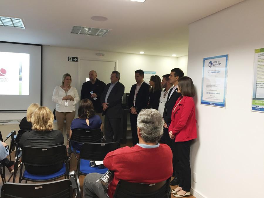 Paloma Debs - Gerente da Filial e sua equipe, João Melo - Superintendente da Sompo e Rogério Freeman - Diretor Regional do Sincor-SP
