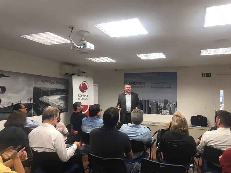 Corretores do litoral paulista tiveram a oportunidade de conhecer mais sobre os produtos da SOMPO e como a seguradora vem investindo em relacionamento e trabalhando em agilidade e qualidade para se tornar cada vez mais eficiente no atendimento aos seus clientes. (corretores e segurados)