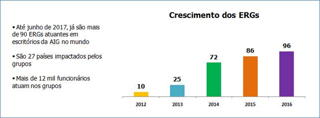 Atualmente, a AIG conta com mais de 90 Employee Resource Groups em todo o mundo, focados nas mais variadas causas inclusivas, como os “Líderes Asiáticos”, “Profissionais Negros na AIG”, “Deficientes e Aliados”, “Profissionais Veteranos de Guerra”, entre outros. Todos esses grupos contam com um “padrinho” na liderança do país de origem, que incentiva, junto aos demais executivos, o fortalecimento das discussões.