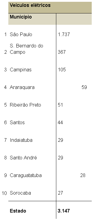 A capital é que tem mais elétricos. Em seguida, vêm São Bernardo do Campo e Campinas (veja a lista dos dez primeiros abaixo).