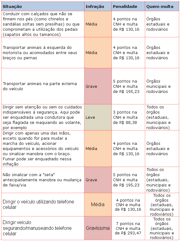 Entre as situações estão comer, ler, fumar, namorar, se maquiar, usar chinelo ou o celular enquanto dirige
