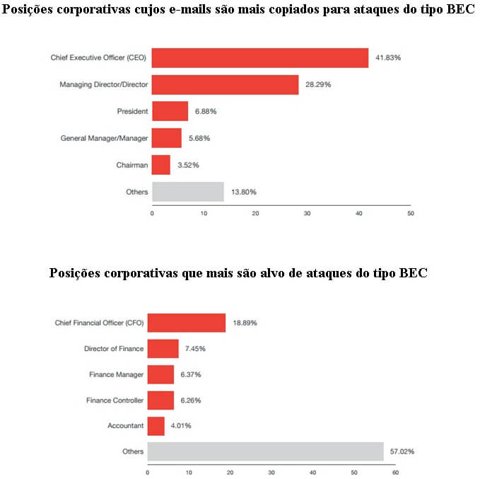 A Trend Micro detectou mais de 82 milhões de ameaças de ransomware no primeiro semestre, juntamente com mais de 3.000 tentativas de BEC (gráficos abaixo), reforçando a necessidade de priorização de segurança. Apesar da crescente porcentagem de gastos com segurança em orçamentos de TI, um relatório recente de análise da Forrester[1] observou que as verbas não são devidamente alocadas para enfrentar as crescentes ameaças enfrentadas atualmente pelas empresas.