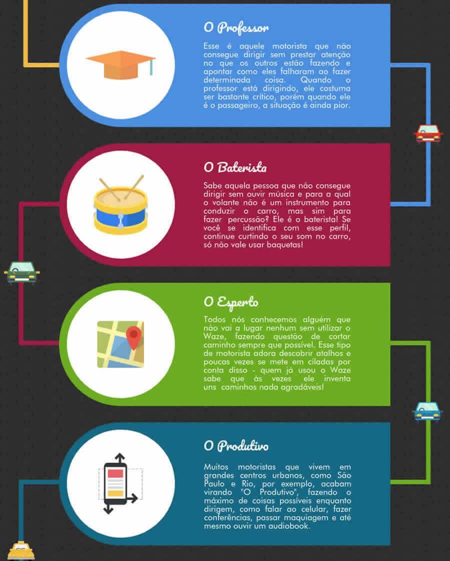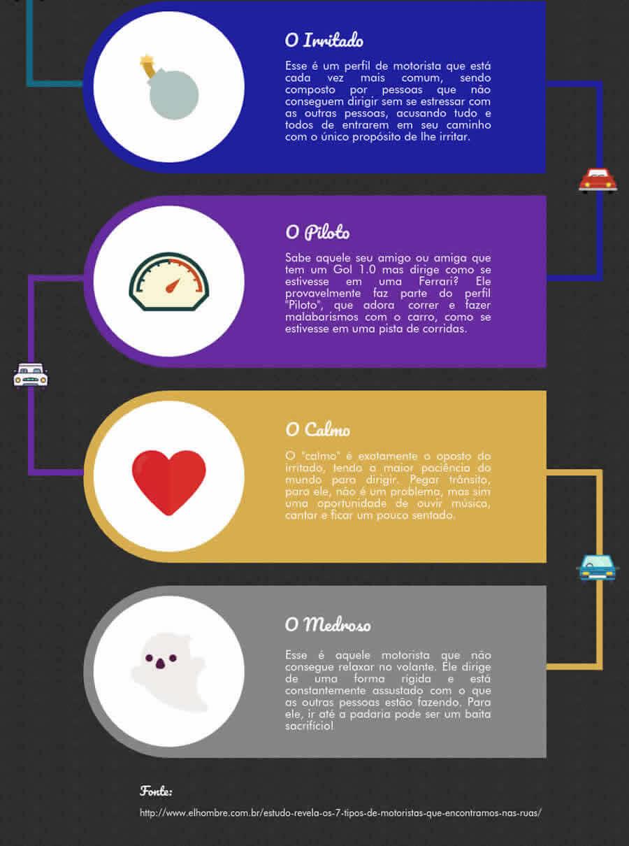 Infográfico Quem é você na direção? Os diferentes tipos de motoristas