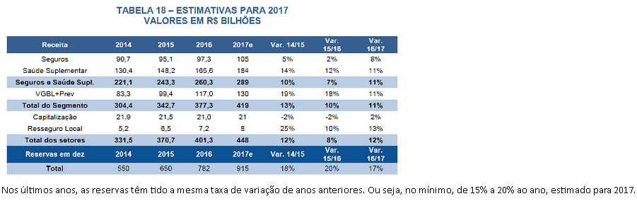 Nos últimos anos, as reservas têm tido a mesma taxa de variação de anos anteriores. Ou seja, no mínimo, de 15% a 20% ao ano, estimado para 2017.