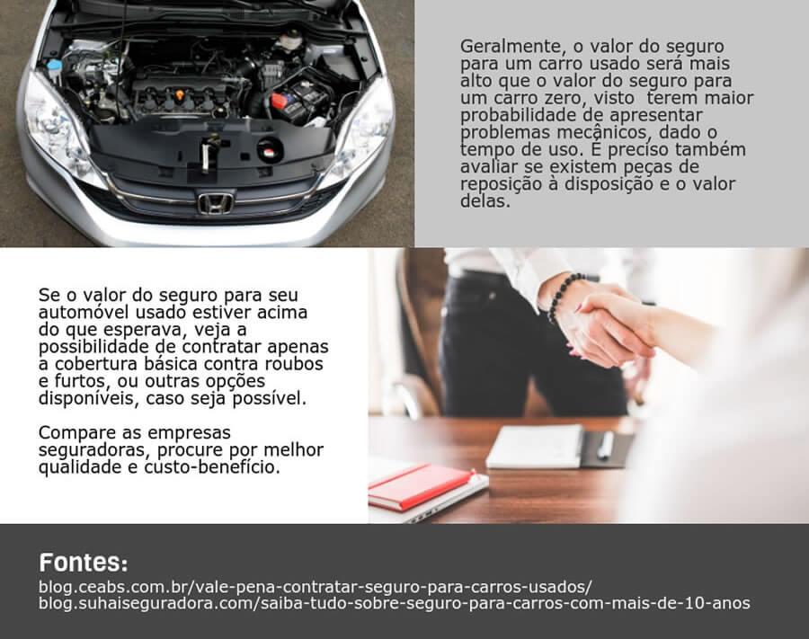 Infográfico Seguro para carros usados: vantagens e desvantagens