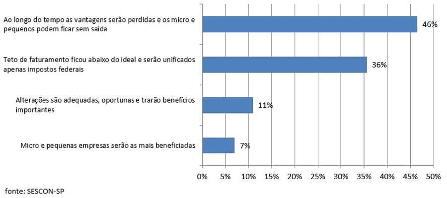 A minoria dos empresários (18%) consultada pelo Sescon-SP está otimista. Para eles, o novo Simples representa mais vantagens do que perdas, pois a mudança trará benefícios importantes para as empresas, principalmente para as micro e pequenas.