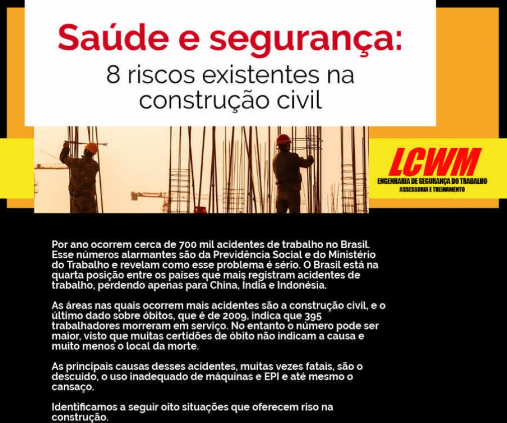 Saúde e segurança: 8 riscos existentes dentro da construção civil.