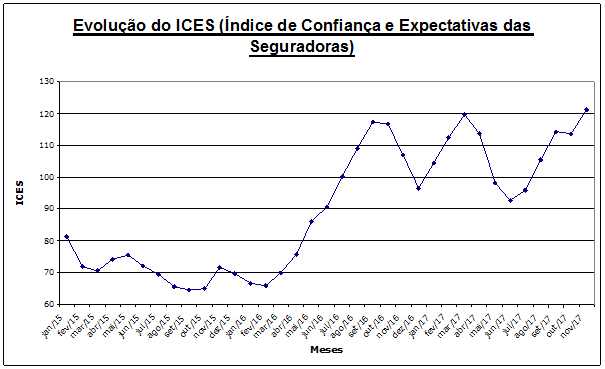 Em novembro, pelo quarto mês seguido, as seguradoras brasileiras continuaram otimistas (ICES acima de 100 pontos).