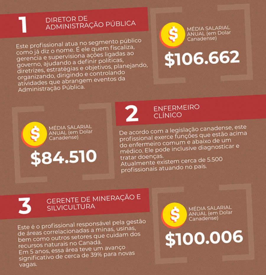Infográfico As 10 profissões mais em alta no Canadá em 2017