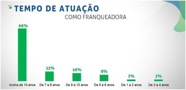 O estudo apontou que 66% das franqueadoras listadas têm mais de dez anos de atuação no mercado:
