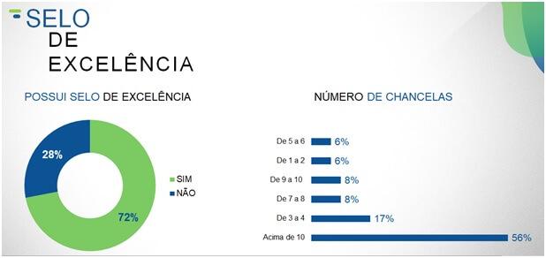 Ainda de acordo com a pesquisa,a maioria das marcas que figuram na lista da ABF (72%) possui o Selo de Excelência em Franchising (SEF) e 56% delas conquistaram a chancela mais de dez vezes. Referência para o mercado, o SEF é a importante chancela do setor no Brasil e é conferido às redes pela ABF a partir de uma pesquisa específica feita diretamente com os franqueados.