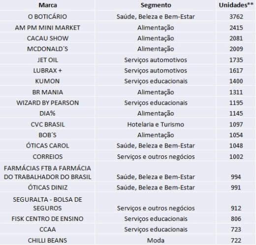 Confira a lista das 50 maiores redes de franquias em operação no Brasil por número de unidades: