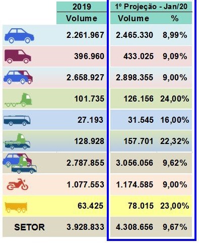 Acompanhe, a seguir, o desempenho e volumes projetados pela FENABRAVE, para o mercado de veículos brasileiro em 2020: