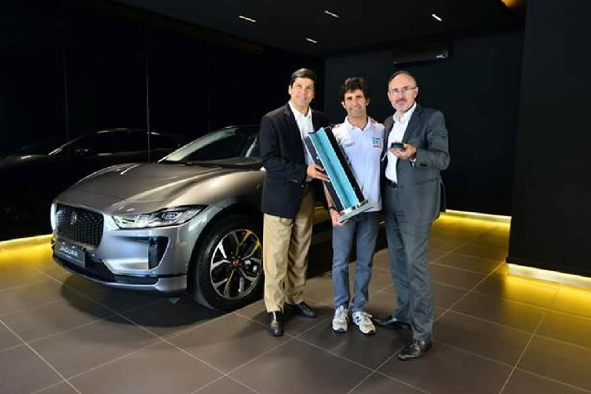 Na entrega, Jimenez foi homenageado pelos integrantes da equipe e executivos da Jaguar, que fizeram a entrega do I-PACE, que representa o futuro da Jaguar Land Rover, ao oferecer total eficiência, design, desempenho e zero emissão de poluentes.