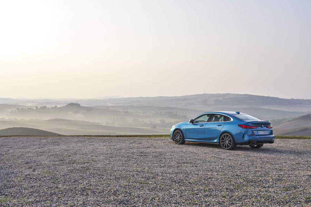 Suas medidas são ideias para as grandes cidades. Com 20 cm menos que o Série 3, conserva a largura de 1,80 mm, entregando esportividade e baixíssimo centro de gravidade e amplos-eixos, uma vez que sua suspensão é calibrada para ser responsiva com ênfase na dirigibilidade sem perder a suavidade ao rodar. O modelo traz ainda lanternas traseiras em LED que invadem a lateral do veículo e são conectadas por uma régua em black piano em cujo centro aparece o logotipo da fabricante alemã. Na versão M235i xDrive Gran Coupé, as duas saídas de escapamento no para-choque traseiro tornam o visual ainda mais arrojado. Para otimizar performance, a rigidez de carroceria foi otimizada de forma especial.