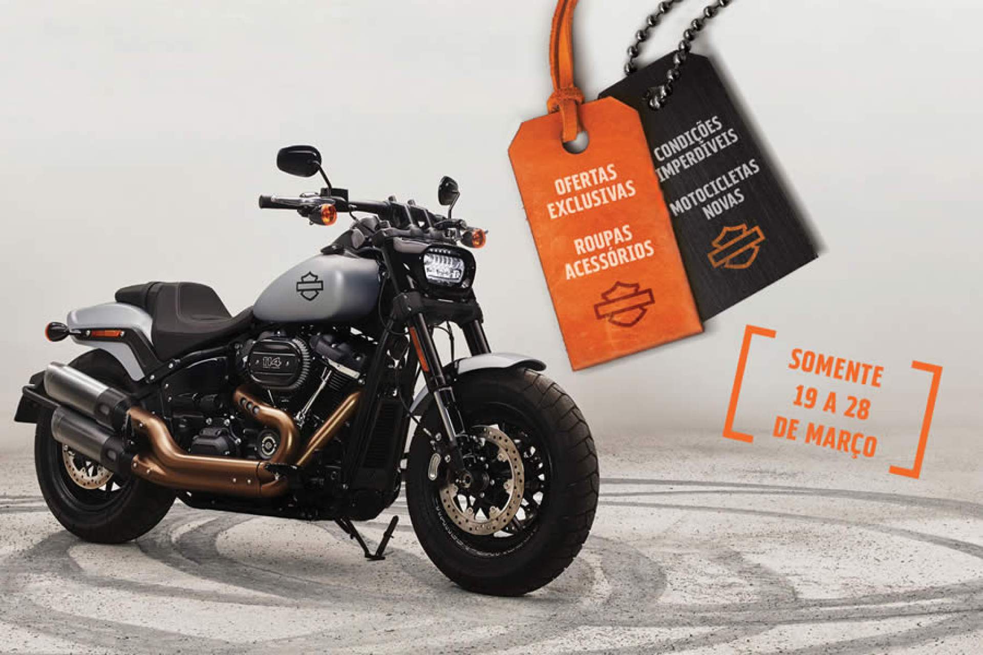 A Harley-Davidson® Fat Bob™ 114, ano/modelo 19/20 e 20/20, conta com uma condição imperdível: Fat Bob™ 114 com preço de Fat Bob™ 107. Neste mês a motocicleta tem seu preço de R$ 74.800,00 por R$ 67.600,00, além de supervalorização de R$ 3 mil na motocicleta usada, tudo isso para facilitar a realização do sonho de possuir uma H-D única. Lembrando que as condições de taxa para financiamento também são válidas para ambos os modelos.