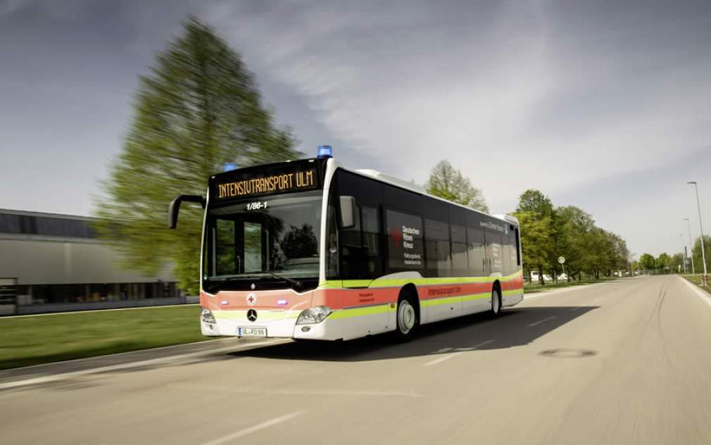 O Mercedes-Benz Citaro produzido em 2019 como ônibus intermunicipal, de 45 assentos e com espaço para 40 pessoas em pé, foi ocupado com quatro leitos completos de UTI para sua nova função. Graças a este ônibus reconfigurado, a Cruz Vermelha Alemã de Ulm possibilitará um rápido transporte dos pacientes que precisam de cuidados intensivos para outros hospitais. As viagens serão supervisionadas por dois médicos de UTI do Hospital Universitário de Ulm. Três paramédicos e dois profissionais da DRK também estarão a bordo.