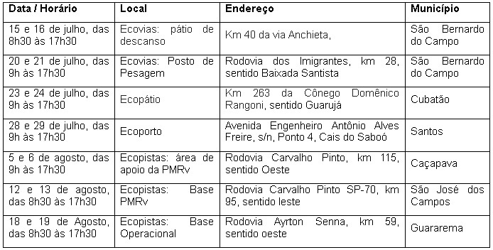 Os caminhoneiros receberão também kits higiênicos, compostos por álcool gel, sabonete líquido, desinfetante e flanela, além de dicas de saúde e bem-estar, por meio de vídeos, com instruções para exercícios, alongamentos e atividades que ajudam a combater o sedentarismo provocado pelo período de confinamento e o isolamento social. Os atendimentos serão feitos nos seguintes pontos: