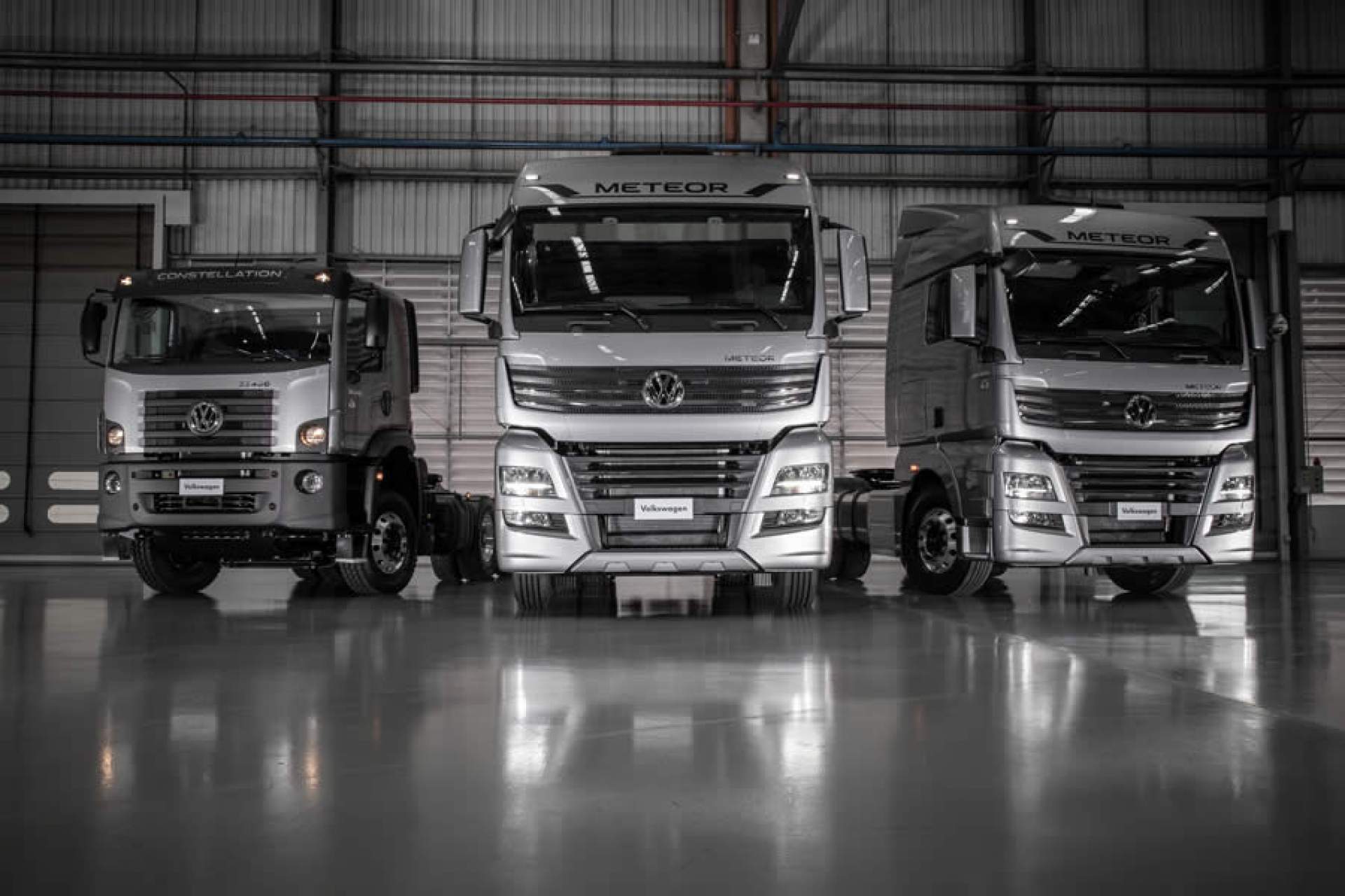 A nova família de extrapesados da Volkswagen Caminhões e Ônibus estreia para revolucionar o transporte de cargas e expandir o portfólio da empresa com os maiores caminhões Volkswagen de todos os tempos. Os novos gigantes são Meteor 29.520 6x4, Meteor 28.460 6x2 e ainda o Constellation 33.460 6x4, todos equipados com motor de 13 litros que proporciona elevada durabilidade e economia de combustível.