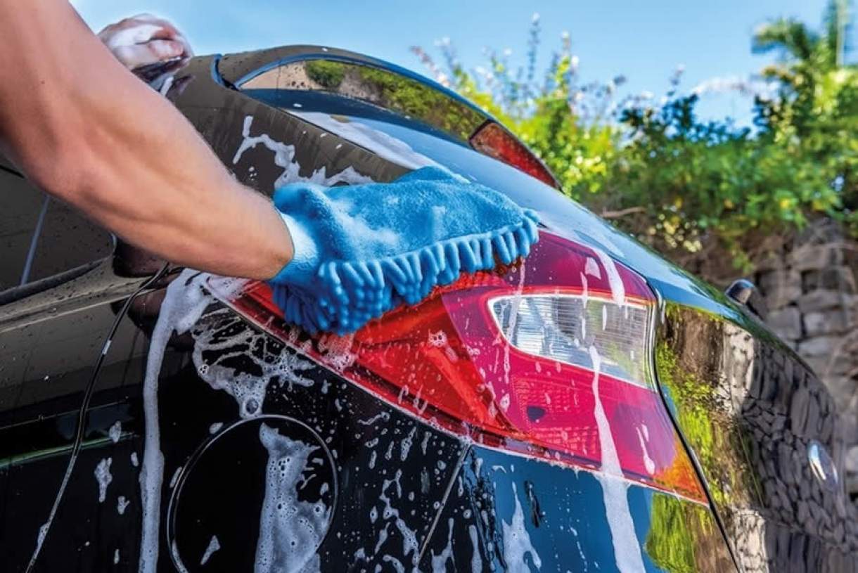 Em seguida, é o momento de ensaboar. A luva em microfibra é ideal para essa limpeza mais geral. Com ela é possível alcançar superfícies irregulares e locais de difícil acesso. A microfibra presente na luva com dupla camada, torna ela uma peça macia, perfeita para limpar superfícies delicadas sem riscar e soltar fiapos. Nessa hora é indicada também a utilização da escova, que permite uma higienização detalhada da calota e do pneu. Pode ser utilizada em carros, motos, bicicletas e até mesmo outros equipamentos.