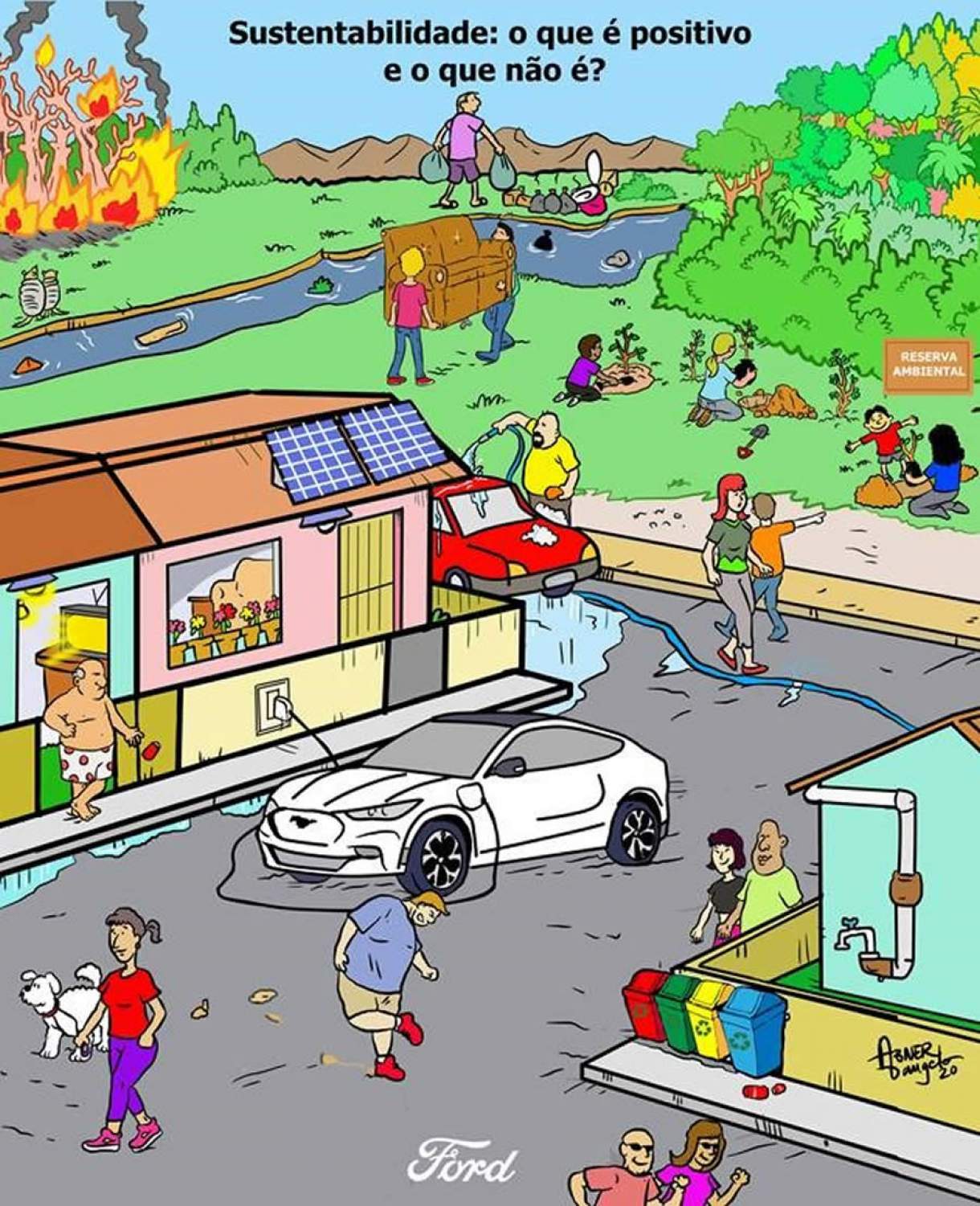 O objetivo é encontrar na ilustração as atitudes que contribuem ou não para a sustentabilidade. Além de novas soluções que ainda dependem de infraestrutura e redução de custo para avançar – como os carros elétricos, nos quais a Ford está investindo mais de US$11,5 bilhões até 2022 – há também atitudes simples que qualquer pessoa pode adotar, como plantar árvores e não poluir os rios.