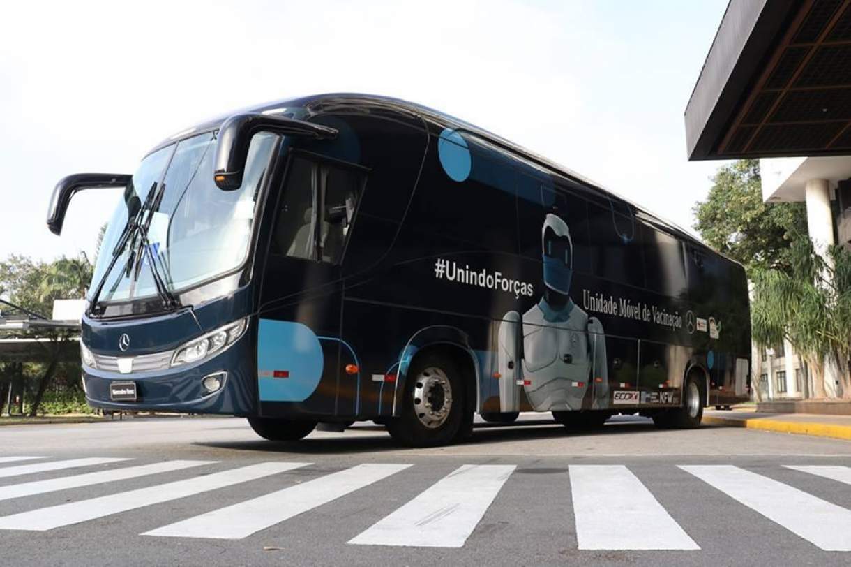 Com o objetivo de acelerar a imunização contra a Covid-19, dois ônibus da Mercedes-Benz, um urbano e um rodoviário, em parceria com a Cruz Vermelha Brasileira, partiram para diferentes roteiros em várias regiões brasileiras.